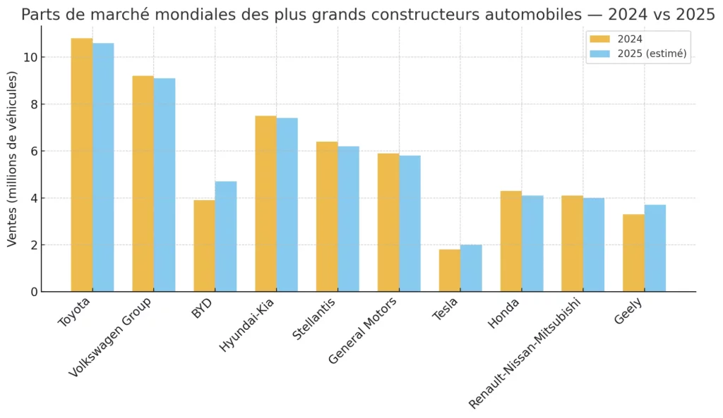 Le Top 10 mondial des constructeurs automobiles en 2025